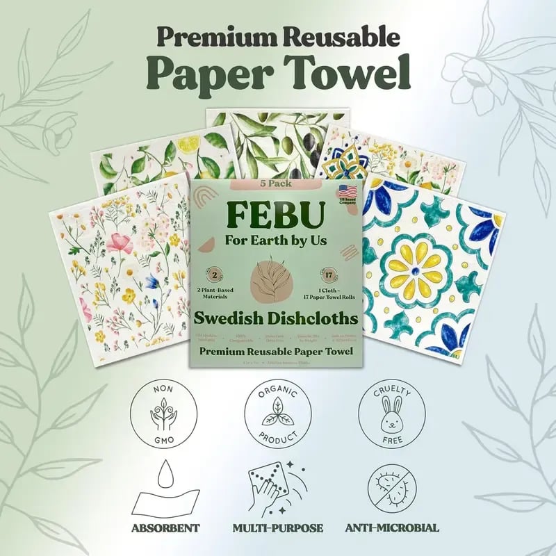 ♻️ Ultra Reusable & Sustainable: Each cloth is washable and reusable up to 50 times, meaning one pack (of five) can replace a staggering 85 rolls of paper towels!