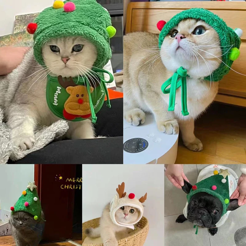 🎄Size selection: green saliva towel and red saliva towel are suitable for pets 15 kg, green cap S and white cap S are suitable for pets 2-8 kg, green cap L and white cap L are suitable for pets 8-15 kg suitable.
