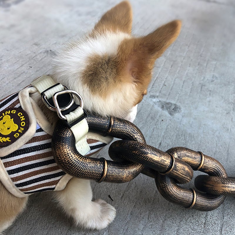🐕️Easy to Use: The fake big dog chain leash is very easy to use. You can easily control your dog with it. It is also very light and comfortable to wear, so your dog will not feel uncomfortable when wearing it.