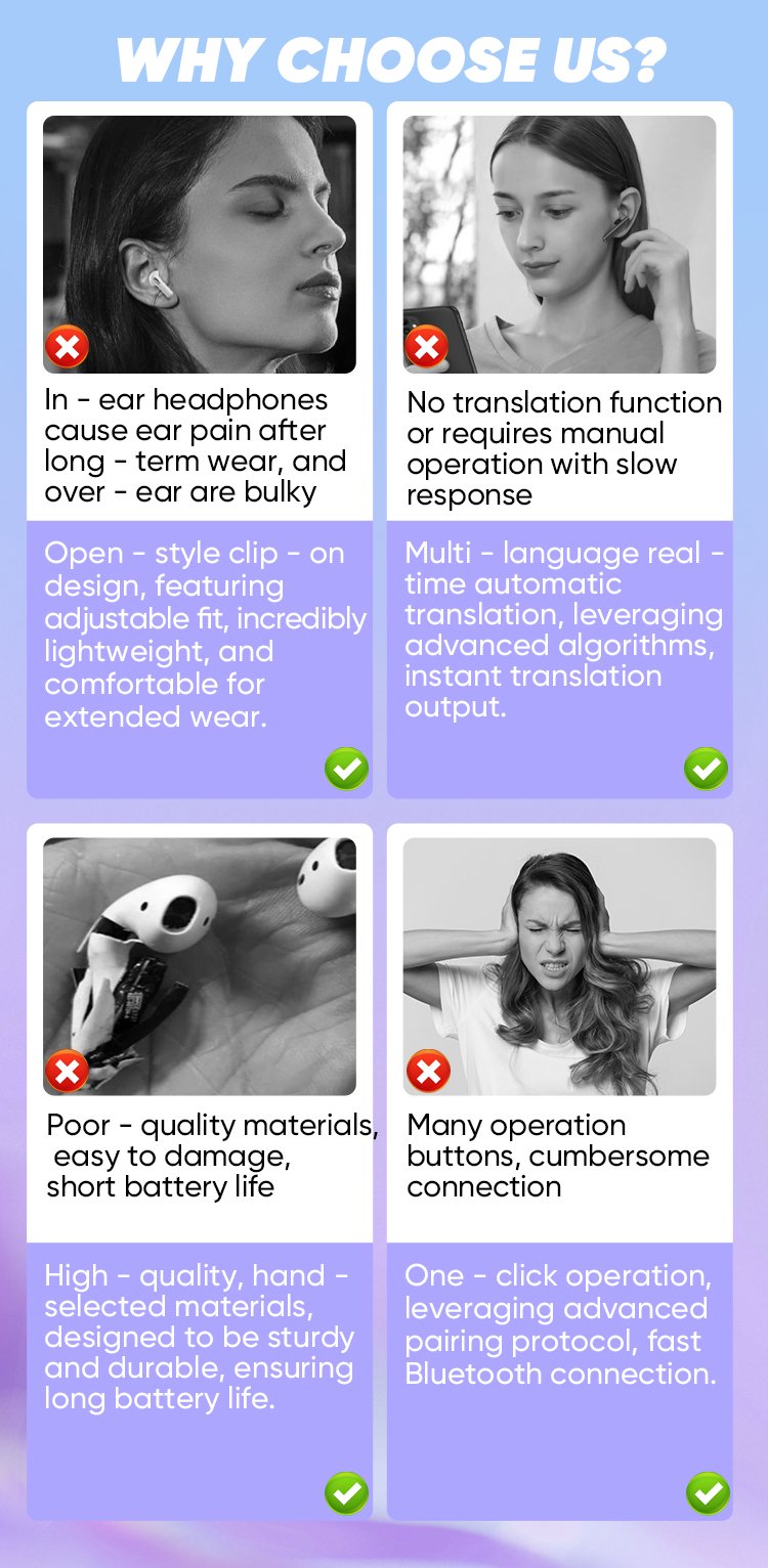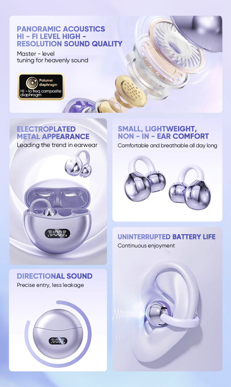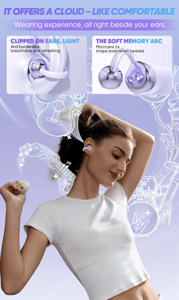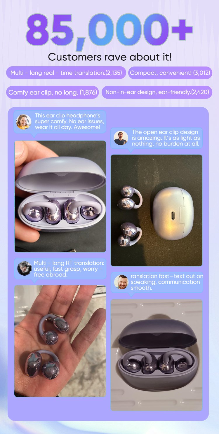 "The ear clip design is much more comfortable than traditional headphones. It doesn't feel oppressive when worn for a long time. It is especially suitable for people like me who need to use it for a long time when in meetings or traveling."