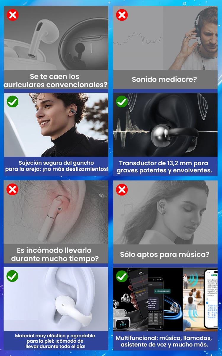 Estos auriculares abiertos con clip son increíbles. Son muy cómodos de llevar y no ejercen presión sobre las orejas como los auriculares de botón. Incluso si los llevas durante mucho tiempo, tus oídos no se sentirán incómodos.