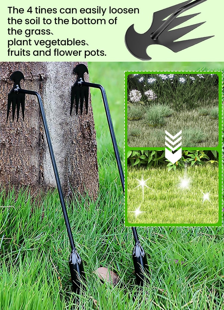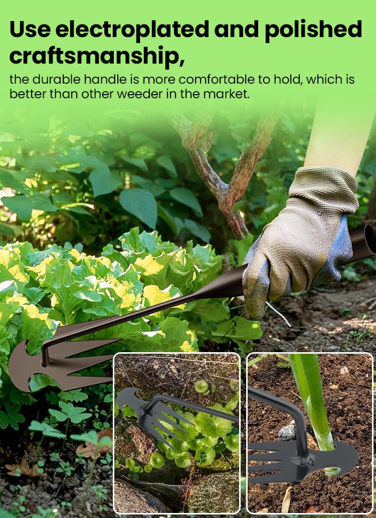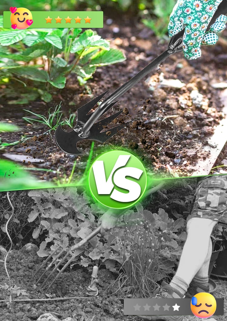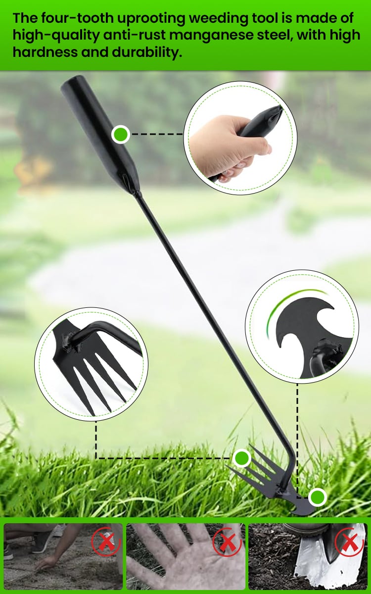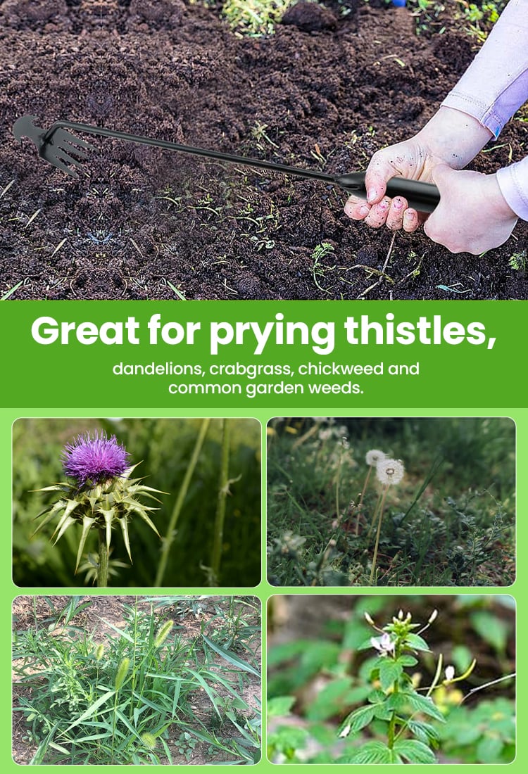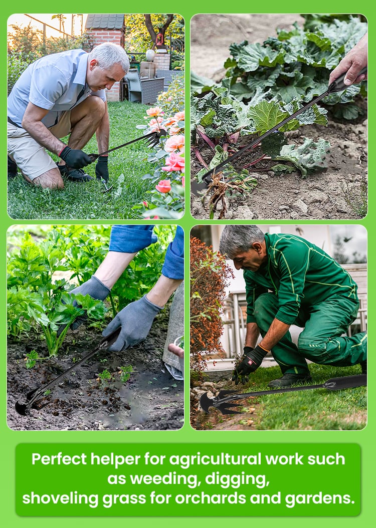 I'm getting older, and bending over to pull weeds is really ex-hausting. This weeding tool is a life saver! Just stand and step on it, and the weeds come out with the roots. lt's so effortless
