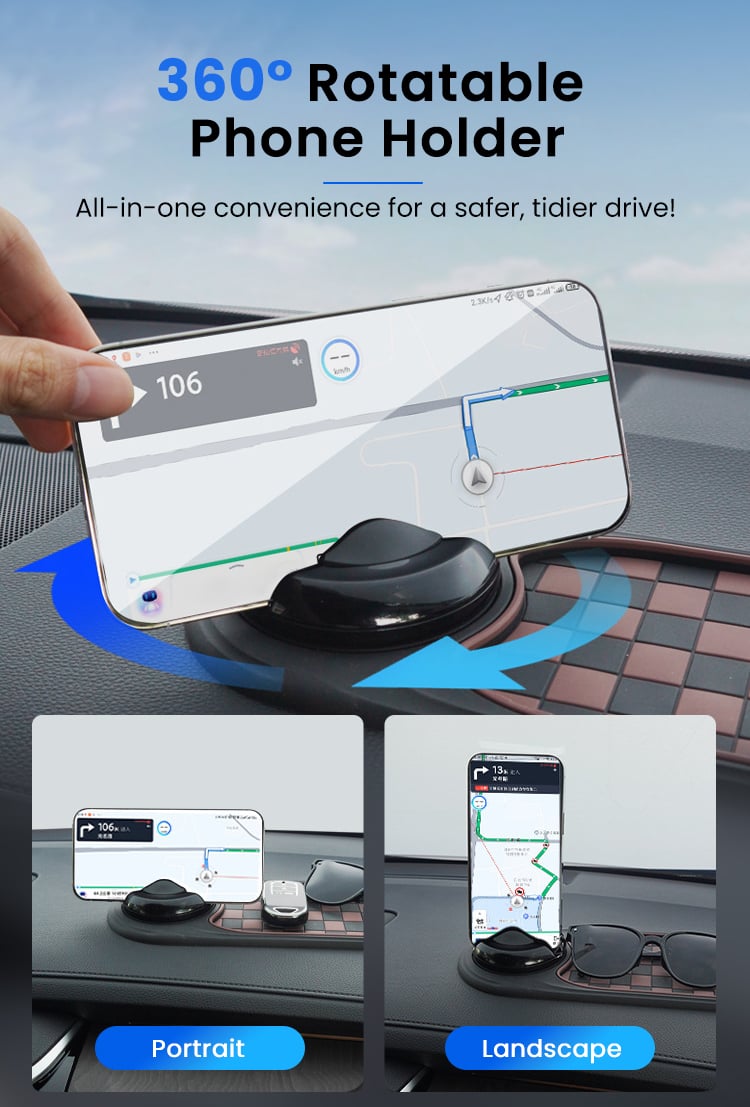 Non-slip technology keeps your items secure, even during sharp turns and sudden stops, with no adhesive used, ensuring no residue is left on the dashboard.