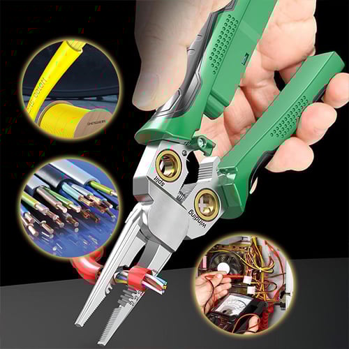 This isn't just another tool. These revolutionary pliers transform your electrical work by combining 8 essential functions, eliminating cluttered toolboxes and ensuring safety with an integrated voltage tester.