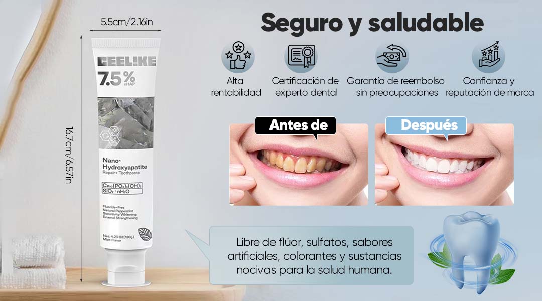 Me encantan sus ingredientes naturales, que me hacen sentir segura cada vez que me cepillo los dientes. No solo me ha ayudado a restaurar los dientes, sino que también me ha dado más confianza en mi sonrisa y el color de mis dientes ha vuelto poco a poco a ser blanco.